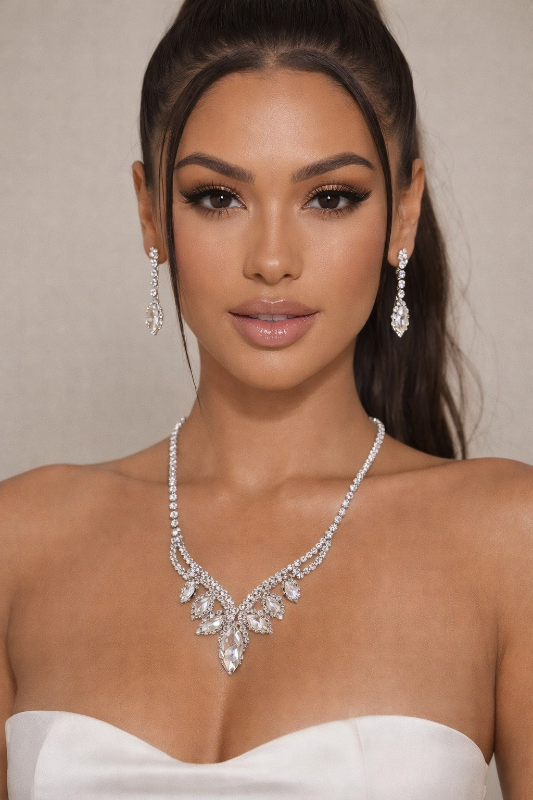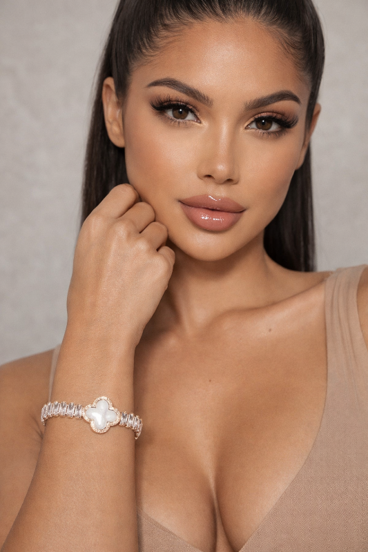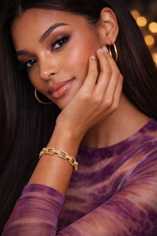 Curved Bar Chain Bracelet With Rhinestone Rows
