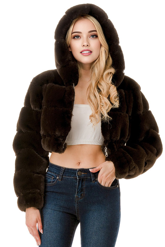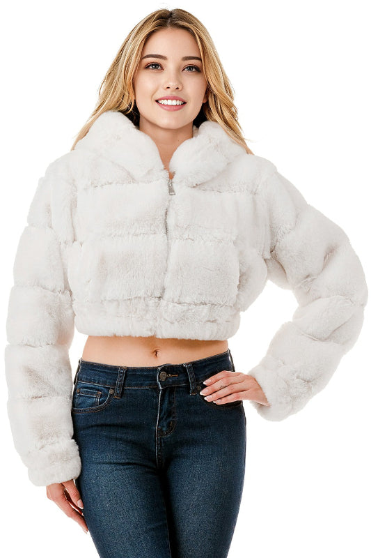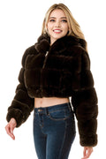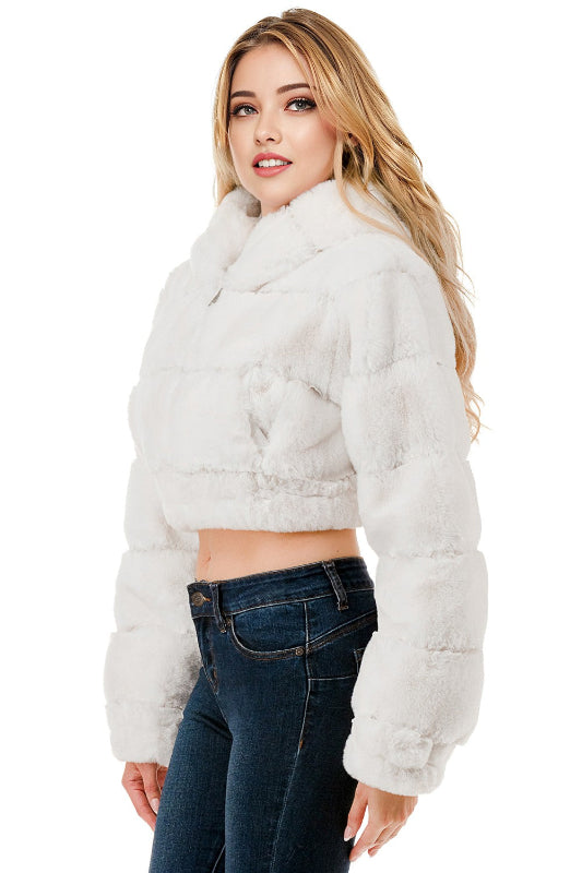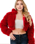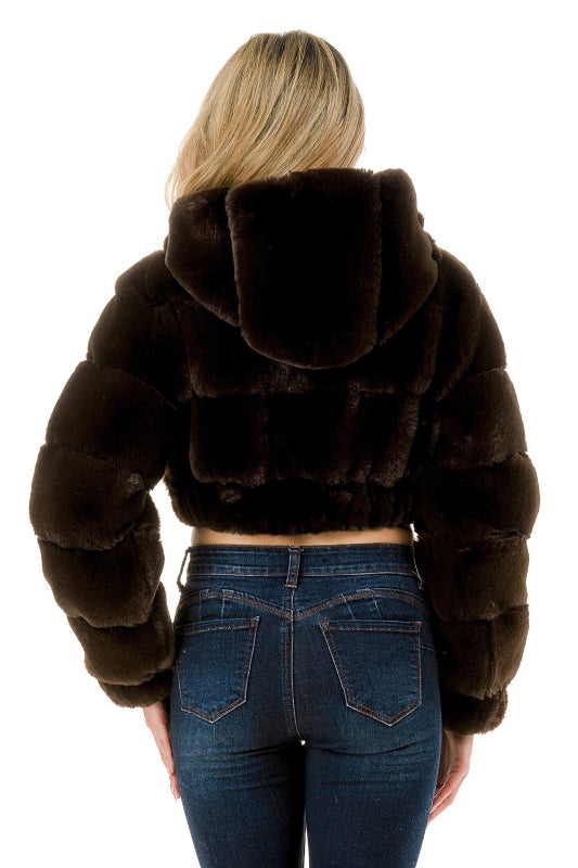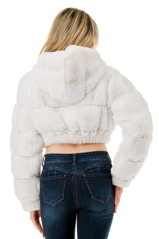 Cropped Puffer Faux Fur Jacket With Hoodie