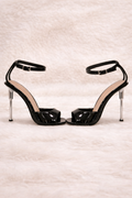 Elegant stiletto sandals with clear strap and ankle buckle. Perfect for parties and special occasions.