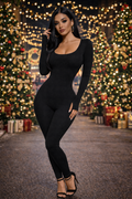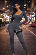 Ribbed stretch jumpsuit design to hug your curves with a sleek, comfortable fit. Perfect for day or night styling.