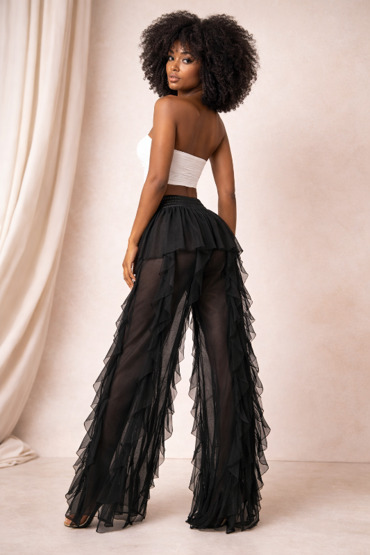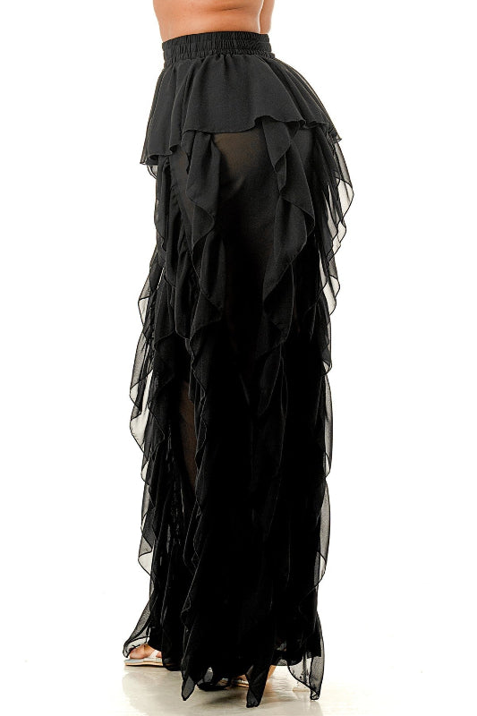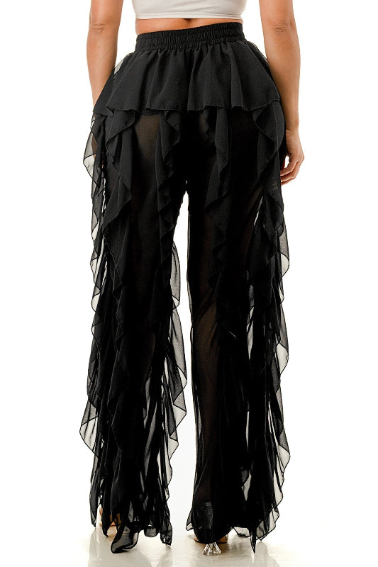High Waisted All Over Ruffle Pants