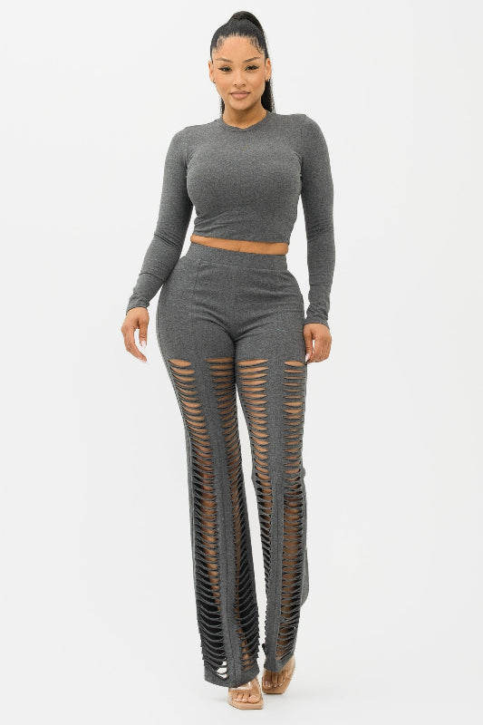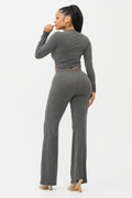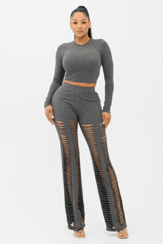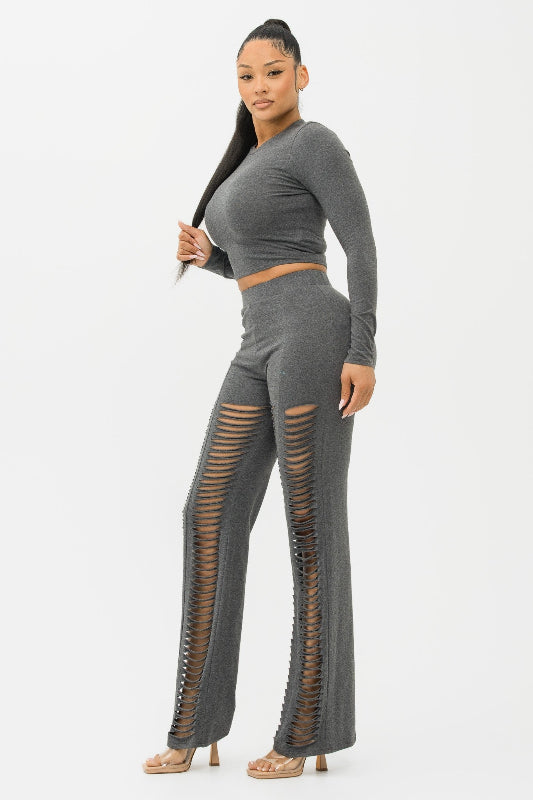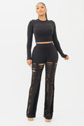 L/S Top Elastic And Lacer Cut Detail Pants Set