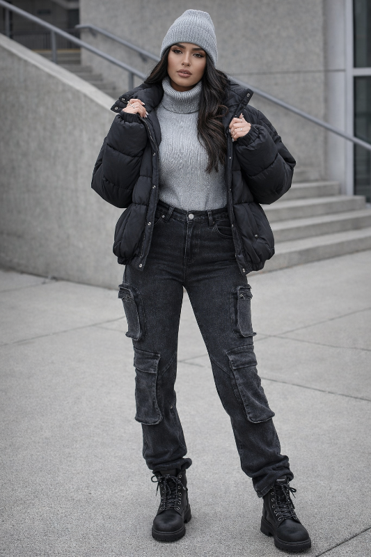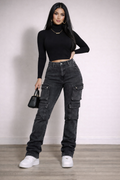 Skinny Stacked Cargo Jeans with multi pockets and stretch fabric. Trendy comfortable and perfect for everyday street style.