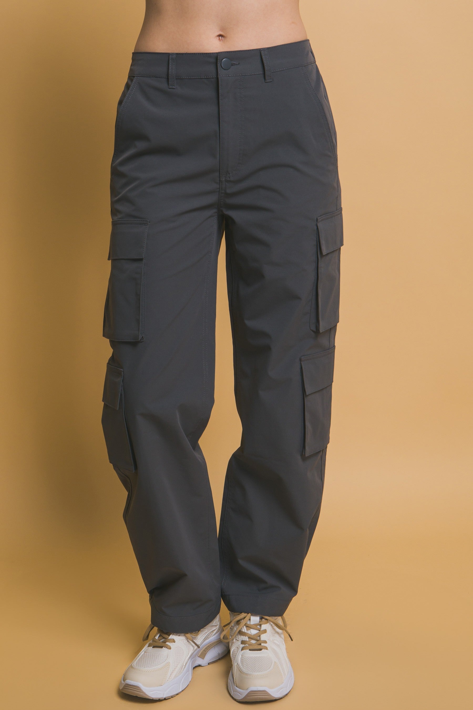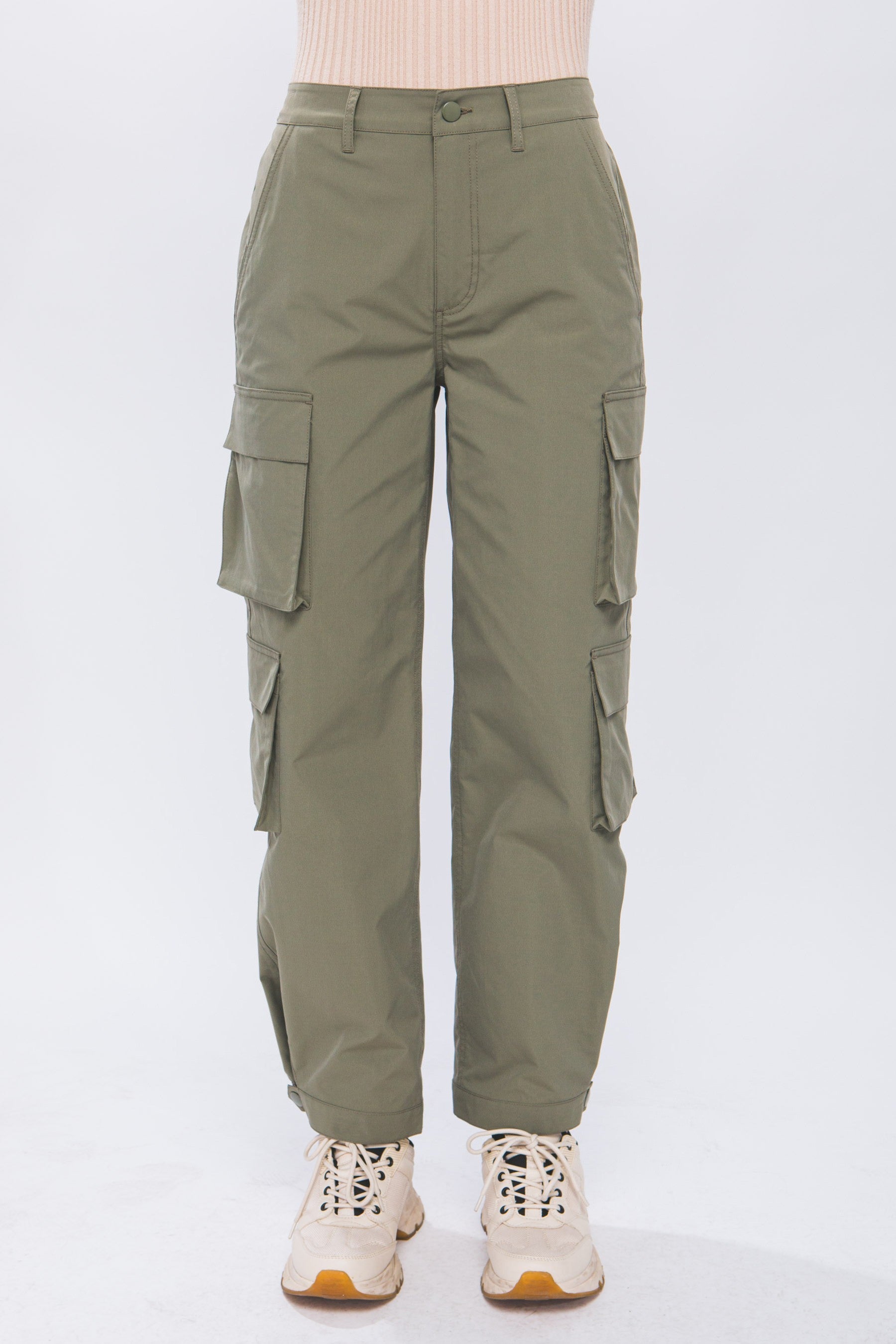Multiple Pocket Snap Button Hem Casual Cargo Pants