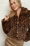 Printed Mink Faux Fur Zip Front Lined Jacket