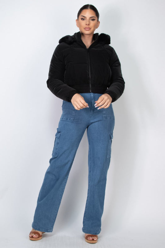 Puffed Fur Hoodie Jacket
