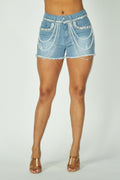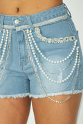 Rhinestone And Pearl Trim Denim Short