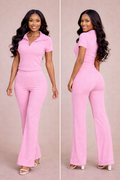 Ribbed Collar Pants Set