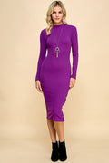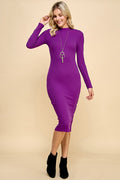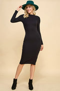 Single Sided Button Down Mock Neck Dress