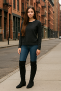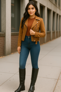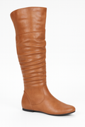 Step into effortless style with our Cognac & black Slouch Knee-High Boot — a timeless favorite for any season. Crafted from soft, vegan leather with a smooth matte finish, this sleek boot features a relaxed slouch shaft, rounded toe, and a comfortable flat sole for all-day wear. Perfect for pairing with leggings, jeans, or dresses, it adds a chic and cozy touch to any outfit.