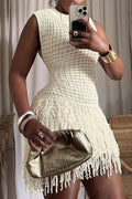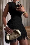 Tassel Skirt Detailed Mock Neck Tank Mini Dress