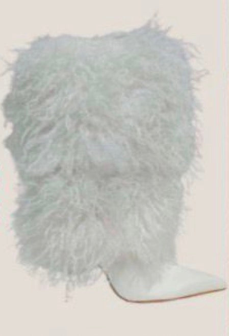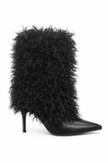 Women Pointy Toe High Heel Furry Booties