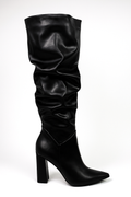 Turn heads in the Wild Diva Black Slouch High Heel Boot — the ultimate statement piece for bold, confident style. Designed in sleek faux leather with a dramatic over-the-knee slouch fit, this boot pairs timeless sophistication with an edgy city-girl vibe. The pointed toe and sturdy block heel elongate your legs while offering comfort and stability, making it perfect for day-to-night wear.